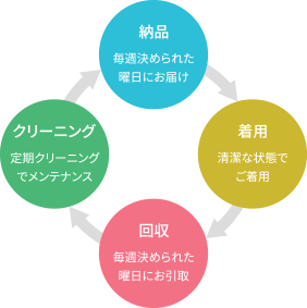 また、常に清潔なユニフォームを着てお仕事ができるので、企業のイメージアップ、着用者の満足度アップにつながります。 -